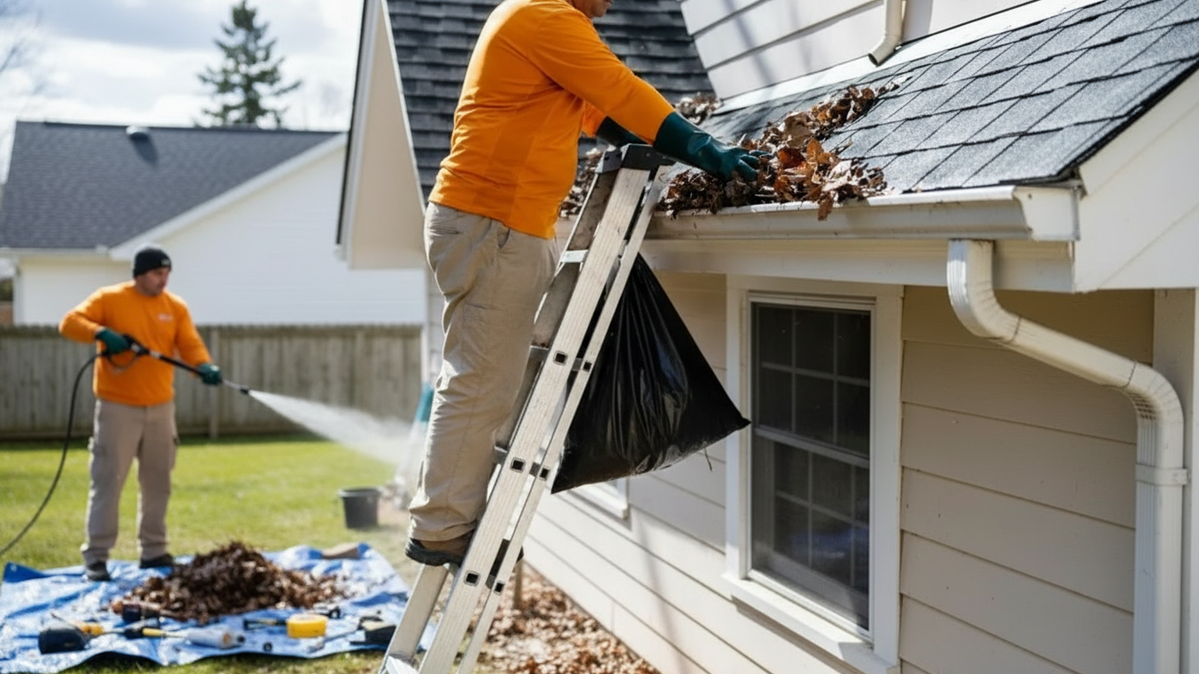 We remove leaves, debris, and buildup, then inspect gutters for leaks, loose joints, and sagging sections. Minor repairs are handled on the spot to restore proper water flow and prevent future problems.